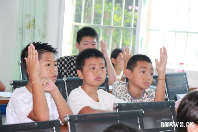 夏令营接近尾声,7月20日,实践团成员组织小朋友们排队走向操场,在操场上开展晨读活动,换了个空旷的“新”地方,小朋友们读得更起劲了,纷纷向实践团成员以背诵的方式展示晨读小收获。7月21日,“文明旅游”主题晨读最后一天,实践团成员方俊婷和范子怡提前制作好游戏动画幻灯片,用以检测夏令营“文明旅游”主题晨读的效果,并对表现出色的小朋友进行嘉奖,小朋友都把手举的高高的,可见对新方式喜闻乐见。