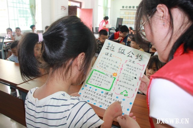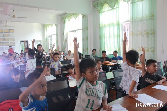 7月17日,清晨的阳光洒满勐满镇曼烈村活动中心,实践团成员方俊婷发出“文明旅游”倡议,发言结束后,实践团成员范子怡统筹带领其他团队成员向参加夏令营的小朋友们分发《中国公民国内旅游文明行为公约》阅读材料,随后,教室里响起朗朗读书声。