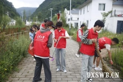 图为实践队成员清扫垃圾 通讯员 陈彬 摄 陈彬