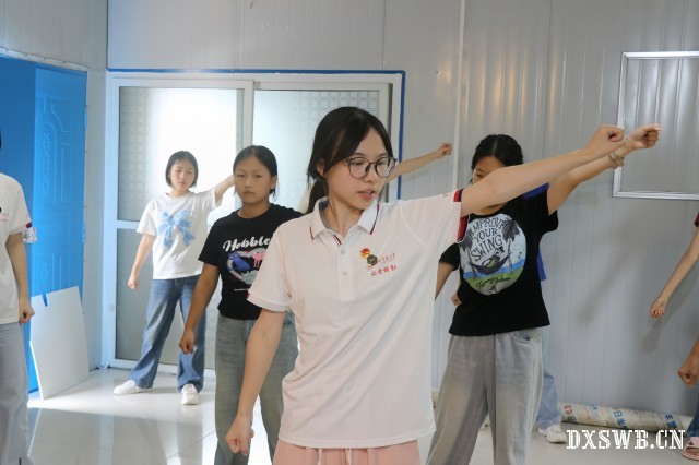 实践团开办了朝阳辅导班负责常设性的辅导课、兴趣课和活动课。辅导班的十位老师主持此次兴趣课,根据学生身心成长的多元需求,开办了古典舞、手势舞、太极拳、啦啦操、合唱、说唱和折纸等课程。在古典舞教学中,杨子萱详细讲解舞蹈动作要点,一对一地进行纠正与指导,并解答学生提出的相关问题。在宗琳琳的示范和指导下,手势舞兴趣班的同学们伴随音乐进行练习,逐步掌握了手势动作。在合唱与说唱的活动环节,刘乐、李江容和袁乐怡引导学生正确发声、掌握音准、感受律动的变化,从而增强合唱效果、体验说唱乐趣。在第四个教学区域,朝阳辅导班开展了太极拳与啦啦操课程,夏年彬、李茂环、刘佳和关旭琪带领学生们活动身体、舒展四肢,呈现出“传统”与“现代”之美。在折纸课程中,谢雨珂教授三种折纸技巧,让彩色的纸片在学生手中化为一群群小鸡、蝴蝶和小鱼。