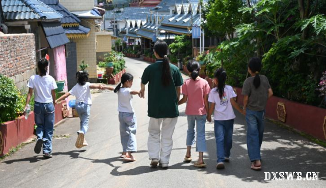 2024年7月14日,伴着蝉鸣,迎着热浪,怀着激情与好奇,带着教案与物资,赶了一天的路,玉溪师范学院文学院“语通八方,籽籽同心”推普实践团就这样风尘仆仆的来到了这个一眼望过去到处都是别具一格的,金碧辉煌的,洋溢着温情的村子——西双版纳傣族自治州勐遮镇景真村,开启了我们的推普之旅。