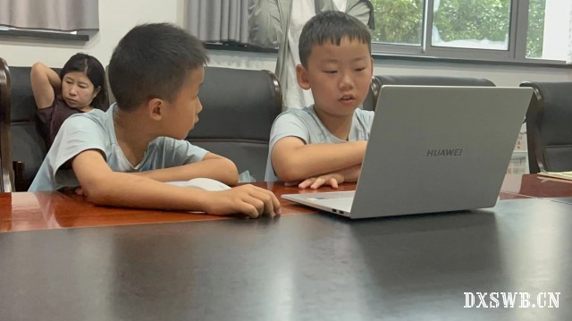 图为小朋友们认真观看视频资料。 通讯员 刘玳宁 供图