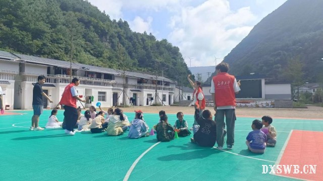 图为实践队成员组织孩子们进行套圈游戏 通讯员