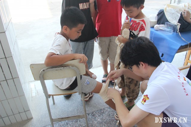 图为实践队队员指导孩子们进行急救包扎(王祎明 供图)