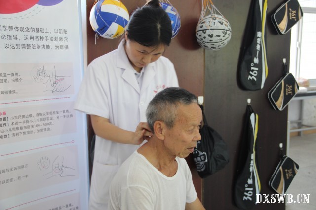 图为实践队队员在为老人按摩肩颈穴位(王祎明 供图)