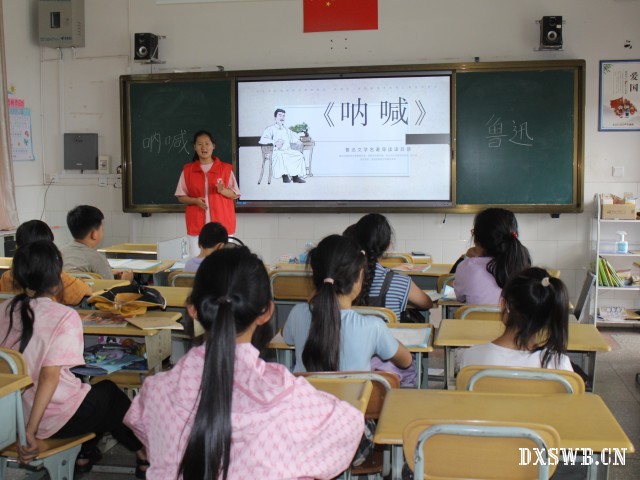 图为实践团成员与同学们分享鲁迅的《呐喊》,张艳琼 摄