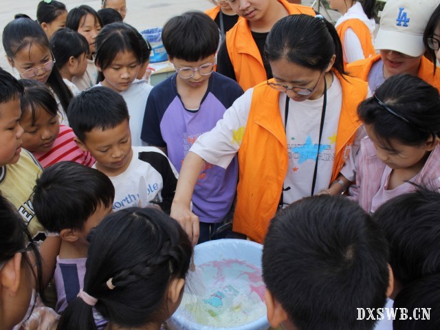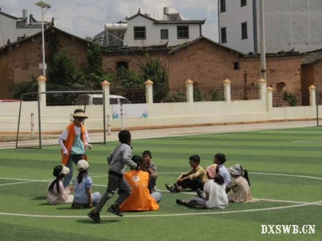图为实践团成员与同学们玩游戏,马伊蕾 摄