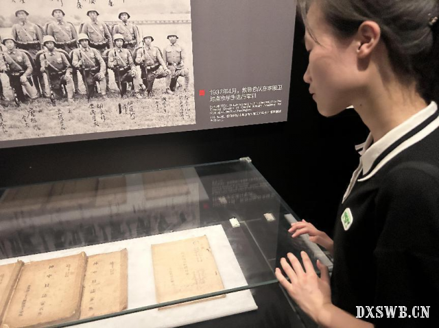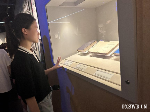图为实践队员观看纪念馆展品。 实践队员何雨涵
