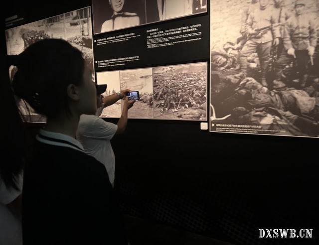供图图为实践队员观看纪念馆图片。 实践队员何雨涵 供图