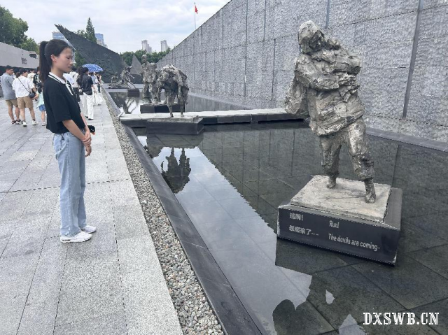 图为实践队员观看遇难同胞雕塑。 实践队员何雨涵 供图