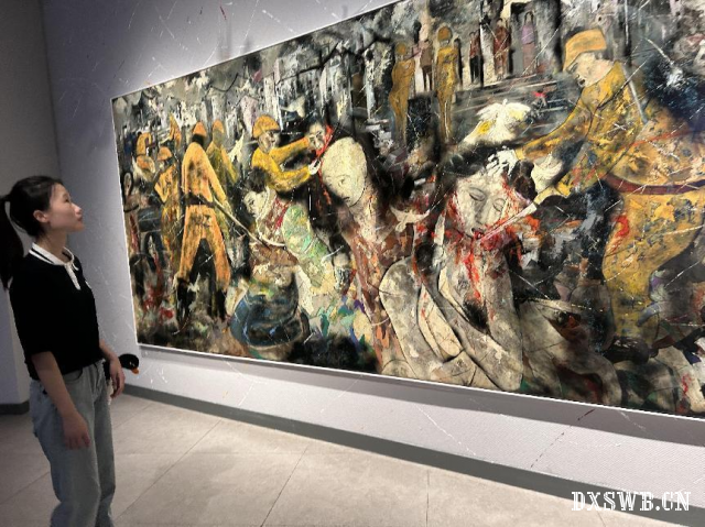 图中的油画也形象地再现了日军杀烧抢掠的丑恶嘴脸,揭露了日军的罪行。