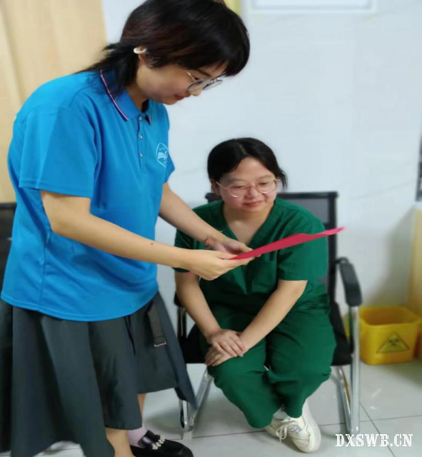 图为实践队员深入年轻居民工作生活,为居民讲解基本的心理健康知识,询问其心理健康情况。李秋洁 提供