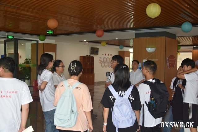 (图为实践团成员相聚而谈,积极向讲解员提问,讲解员热情回答)