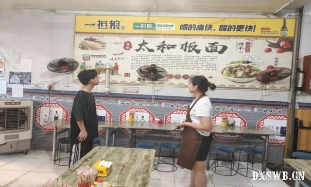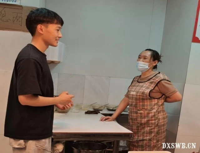 图为实践小组成员询问店主阜阳面食历史发展,大学生网报通讯员 温家俊 摄