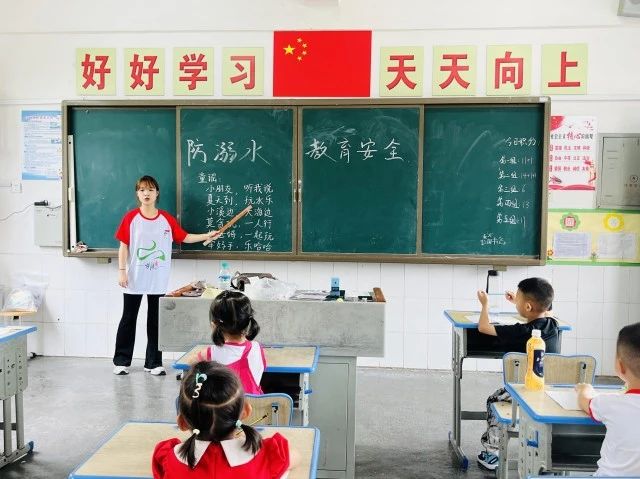 为了让孩子们更加深刻地记住防溺水知识,实践队的同学们还带来了防溺水之歌的表演教学。通过歌曲这种富有节奏感和韵律感的形式,帮助孩子们更轻松、更牢固地记住防溺水的关键知识和保护措施,让防溺水知识更加深入人心,激发孩子们主动学习和关注防溺水知识的积极性。在学习展示环节,孩子们纷纷上台展示自己所学的防溺水之歌,他们自信的笑容和熟练的唱词,充分展示了此次宣传活动的成效。