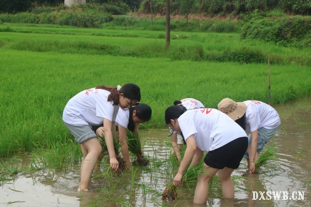 上午时分,实践队队员们来到荷田村,近距离观察了当地特色农作物的生长状况。实践队成员深入种植园,观察玉米,采摘莲花莲子,深刻感受到了现代农业与自然生态的和谐共生。午后,实践活动深入基层。在农户的指导下,实践队队员们换上雨靴,踏入稻田,亲身体验插秧,这份体验让他们对“谁知盘中餐,粒粒皆辛苦”有了更深的理解,也激发了他们投身乡村振兴的热情。随后,实践队一行移步至古徽派建筑群,穿梭于白墙黛瓦间,感受着历史的沉淀与文化的韵味。古宅的雕梁画栋、婺源三雕的精巧细致,无一不展现着稚拙粗犷、精巧秀丽的特点。