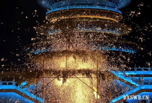 在婺女洲的表演中,江寻千身穿传统服饰,立于特制的花棚之下,轮番用花棒击打1600度的高温铁水,飞溅起几十米高的铁花,尤如繁星点点。随后,江寻千又身披红袍,以精湛的技艺操纵着火壶。火焰在壶中跳跃时而温柔如柳,时而盛大如龙,令人叹为观止。在这场表演中,江寻千不仅展示了打铁花和火壶的技艺本身,还通过讲解的方式,让观众了解这些技艺的起源、发展以及它们在当地文化中的意义。