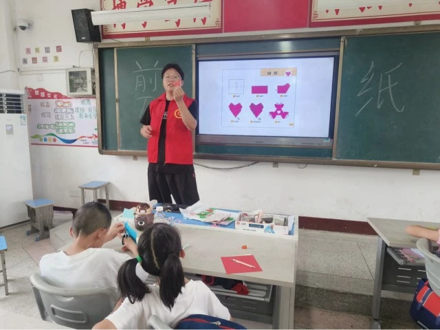 为了提高学生们的动手能力、创造能力,培养孩子们的耐心和细心,缓解学生们的学习压力。湖北汽车工业学院科技学院青锋·星源志愿服务队于7月11日在湖北省黄冈市红安县上新集镇董必武红军小学开展了一堂剪纸课。课堂上,志愿者带领学生们学习了剪纸的文化、手法、技巧,让他们在自己动手的过程中体会到专注力的重要性。