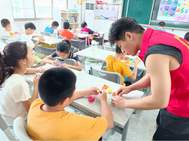 为了提高学生们的动手能力,培养学生们的创意,减轻暑假学习压力。湖北汽车工业学院科技学院青锋·星源志愿服务队于7月12日在湖北省武汉市黄冈县上新集镇董必武红军小学开展了一堂泥玩具课。课堂上,志愿者带领学生们捏泥玩偶,分组合作完成,让他们深刻体会到团结协作的重要性,在完成创造的过程中充分发挥创意。