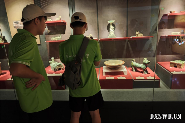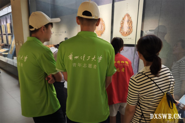 图为实践队员向博物馆志愿讲解员学习如何讲解。通讯员 刘朗 摄