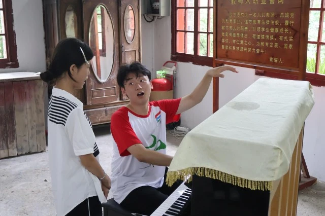 (图为志愿者进行声乐教学)