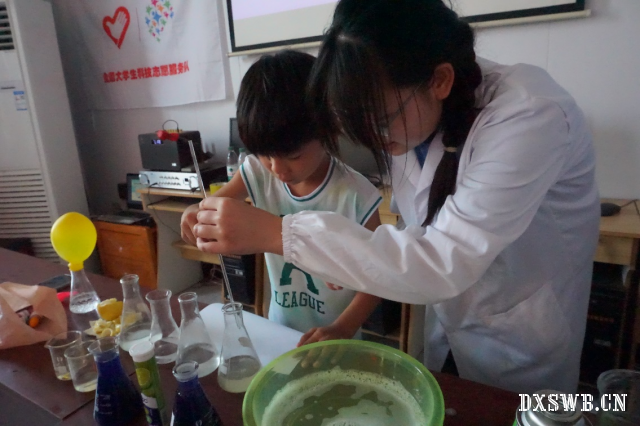 为加强幼儿、青少年对化学知识的了解,山东理工大学化学化工学院“Zn”火相传实践团于7月15日上午赴淄博市桓台县河南村开展化学科普趣实验。让化学的种子扎根更多孩子心中。
