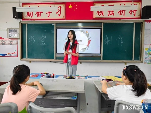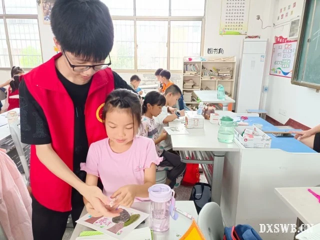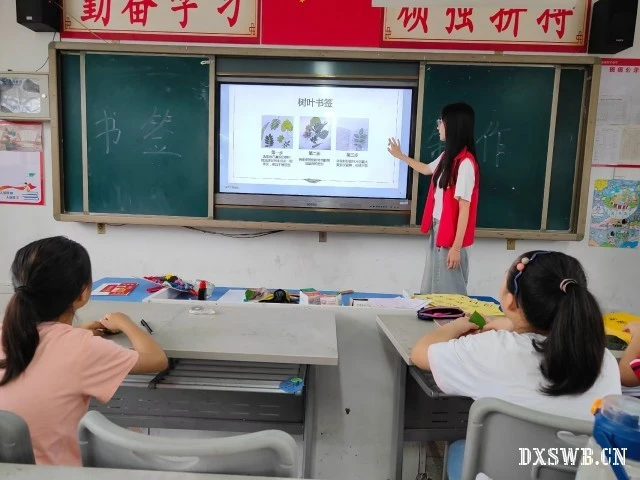 为了丰富学生们的假期生活,增添暑假独特色彩,让学生们体验到自然之美。湖北汽车工业学院科技学院青锋·星源志愿服务队于7月16日在湖北省黄冈市红安县上新集镇董必武红军小学,开展了一节书签课。在课堂上志愿者带领学生们用树叶制作书签,让他们在制作过程中发挥创造力,体会手工艺术的乐趣,在这个过程中鼓励大家共同参与和分享成果,增进学生们之间的感情,同时也让他们认识到团队合作精神的重要。