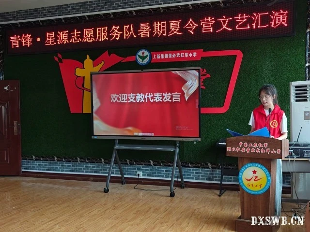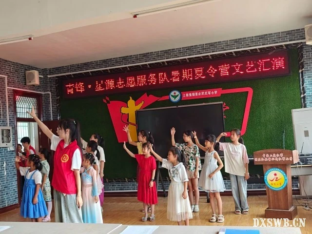 为了给这个充满活力和创意的夏季暑期夏令营画上一个完美的句号,湖北汽车工业学院科技学院青锋·星源志愿服务队于7月15日在湖北省黄冈市红安县上新集镇董必武红军小学,开展了一场文艺汇演。在这次汇演中,有来自不同年纪的参与者展示他们在假期中学会的才艺,同时还有志愿者们的祝福表演,表演内容覆盖了舞蹈,音乐等多种形式,每一场演出都充分展现了演员们的创意和努力,赢得了现场领导和家长们的阵阵掌声和喝彩。