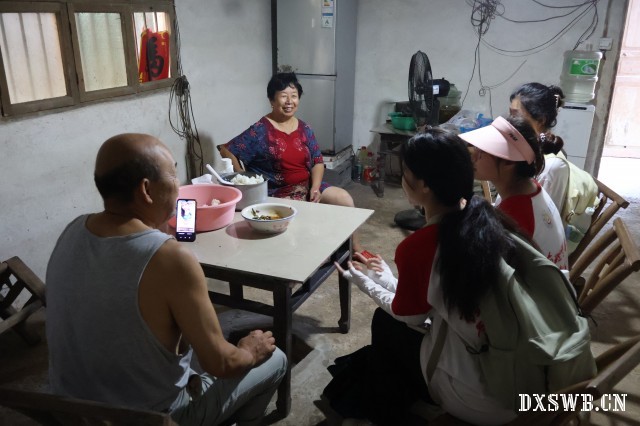看到志愿者们站在院外,彭奶奶便热络地邀请大家进入家中,并从房间搬出椅子,不许志愿者帮忙。交谈中,彭奶奶一句“你们长得好像我孙女”,触动了大家的心。尽管在交流过程中存在方言障碍,但志愿者们的关爱之情丝毫不减。彭奶奶向大家介绍了自己的生活状况:88 岁的她丈夫已离世,孙辈在外打工仅过年回家,平时靠干农活和捡瓶子来补贴家用。