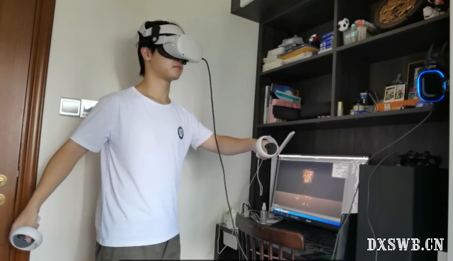 图为实践团成员对“VR+打铁花”项目成果进行体验。杨俊凯 供图