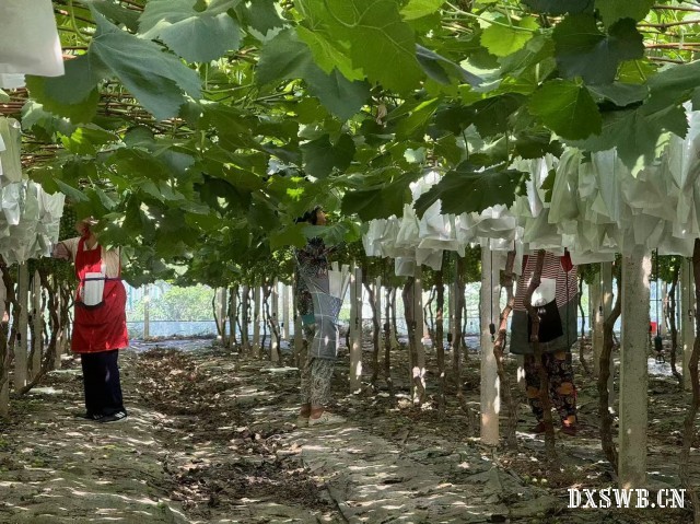 图为果农们正在为葡萄套袋。刘一辰 供图