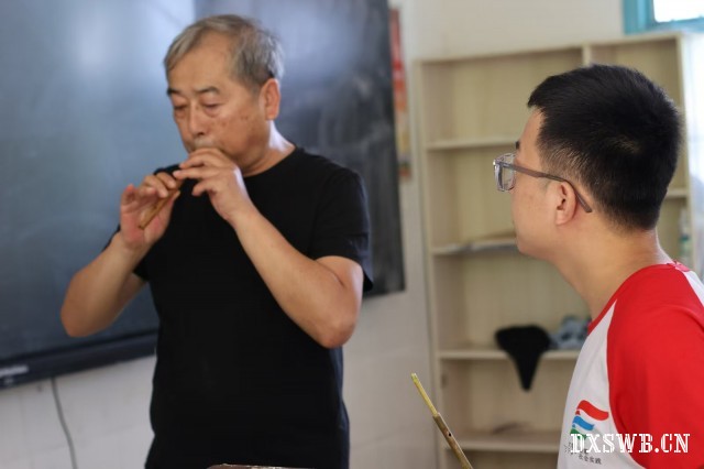 在教学之余,志愿者们还与非遗传承人展开了深入交流,知晓了竹唢呐的制作方法、演奏形式以及演奏场所。他们一同探讨竹唢呐的历史渊源、发展现状以及未来的传承方向。这种交流不但加深了志愿者们对苗族竹唢呐的理解,而且为传统文化的传承注入了新的活力与思路。