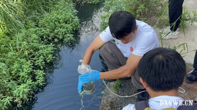 图为实践成员实地采集污水水体样本 黎婧彤 供图