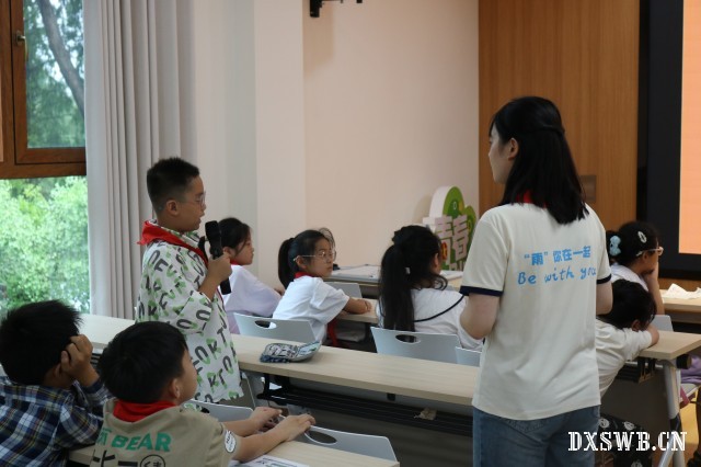 (图为志愿者为课上积极发言者盖章以示表扬)