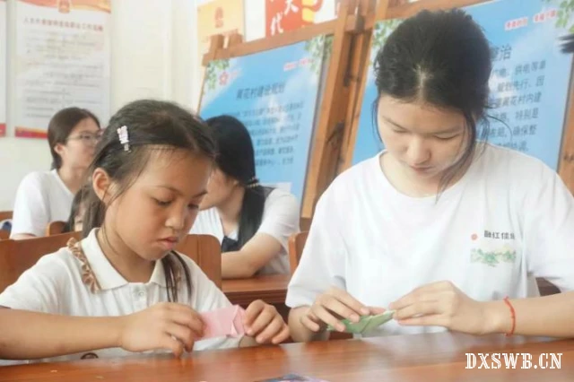 为了有效促进乡村地区美育的发展,提升孩子的艺术素养和创造力,同日,“融红佳绿”调研突击队开展了一次折纸绘画的美育课堂。队员们耐心地为每位孩子讲解折纸的步骤和技巧,从精巧的折纸作品到精彩的绘画,队员们一步步引导,让孩子们在实践中感受美、创造美。小朋友们也表现出极大的兴趣和热情,他们专注于折纸,不时向队员们请教。在队员们的帮助下,孩子们完成了一幅幅精美的折纸作品和绘画作品。此次活动不仅让孩子们体验到了折纸和绘画的乐趣,也让他们在动手操作中提升了审美能力和创造力。