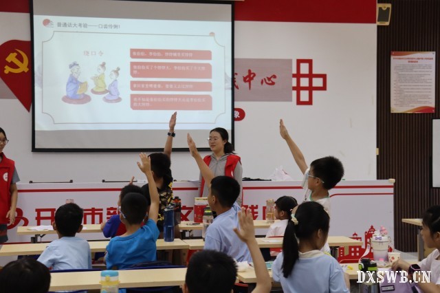 在课堂上,队员们带领同学走进生动的语言世界,通过展示有趣的视频和课堂提问,让同学们“动起口来”,感受唇齿间迸发语音语调的独特体验。队员强调普通话作为国家通用语言的重要地位,并澄清了一个误区:推广普通话并不意味着要消除方言,而是为了打破地域语言障碍,促进社会成员的和谐交流。在朗诵课上,同学们以名篇《中国少年说》为例,通过发音训练、节奏把握和情感融入等技巧的学习,深刻感受普通话朗诵的韵律美与力量。