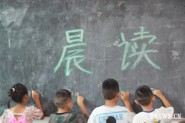 (图为小朋友在黑板上写晨读收获与感悟,方俊婷供图)