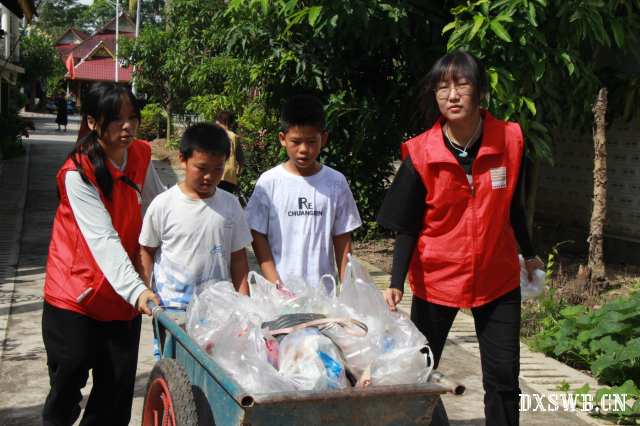 7月18日 实践团在勐满镇曼烈村开展了“爱护环境,争做环保小卫士”的活动。