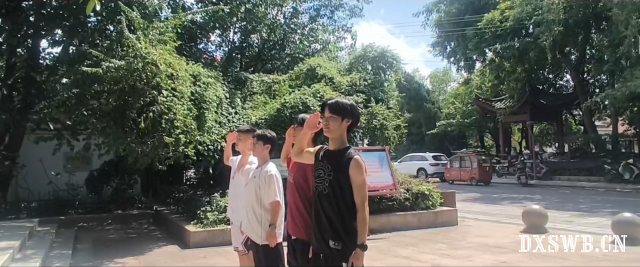 图为实践队员进行对英雄纪念碑进行注目礼。丁轶 供图