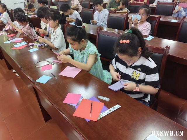 活动中,小朋友积极跟随志愿者讲解步骤有序进行剪纸,与周围小伙伴相互讨论,充分展示出自身想象力让本来一样的剪纸在不同小朋友手中展现出更加生动的摸样,活动室气氛活跃一片欢声笑语。