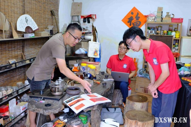 7月16日,实践团调研组成员探访“国家级非物质文化遗产名录漆艺髹饰技艺”阳江漆器髹饰技艺项目的市级代表性传承人林业潮老师,深入了解阳江漆艺的卓越传统,漆艺之美源于材料的质感、画作的美感具,漆器那独特的韵味让人流连忘返。谈到漆器,林老师说:“人画一半,天画一半,随意而随机,展现出漆艺独有的美感。”这是来自非遗文化传承人的魅力故事,展现了是每一位手工艺匠人精益求精的态度。