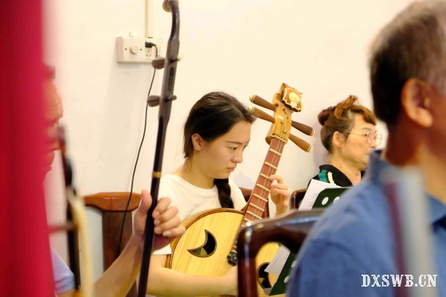 图2 实践团成员现场演奏粤剧乐器 孙琪文供图。