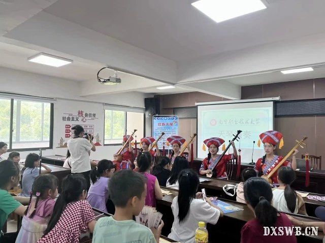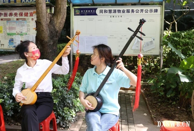 在心圩江东社区,通过壮族天琴的演奏和传唱、壮族天琴指法的指导,让社区居民们也更加了解和尊重彼此的文化差异和传统。这种充满神秘色彩的乐器也走进西乡塘区心圩街道新村,以“理论宣讲+表演+互动体验与教学”的模式,帮助孩子们了解优秀传统文化。