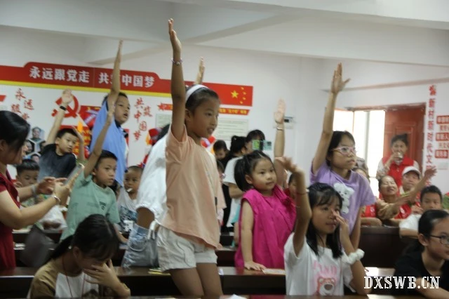 图为实践团成员在西乡塘区心圩街道新村上壮族天琴小课堂,小朋友们积极举手回答问题。 通讯员 黄丽桦 供图