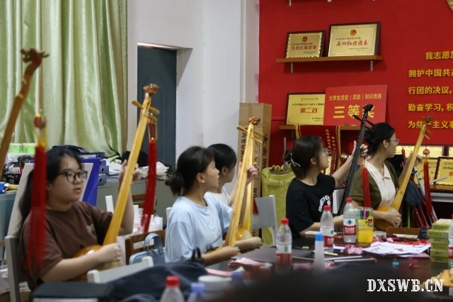 图为实践团成员为实践活动做准备,练习壮族天琴。 通讯员 陆艳珠 供图