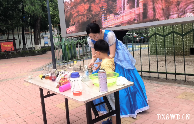 实践团成员为吸引“幼儿园(儿童)阶段”受众群体的注意力,将孩子们耳熟能详的“灰姑娘”“白雪公主”“小高人”“小红帽”编写成剧本《灰姑娘历险记》,于淄博市桓台县东岳国际社区、淄博市张店区潘苑社区等社区进行演出,主要将化学实验穿插进舞台剧中,将神奇的化学现象在剧情中冠以“魔法”之名,并在演示过后对“魔法”背后的实验原理进行通俗易懂的解释,将一些偏“专业化”、“抽象化”的词汇与实际生活联系到一起,让孩子们对化学有更具象化的感知。通过演出,不仅激发了孩子们对未知事物的探索能力,也锻炼了孩子们的动手能力和交流互动能力。