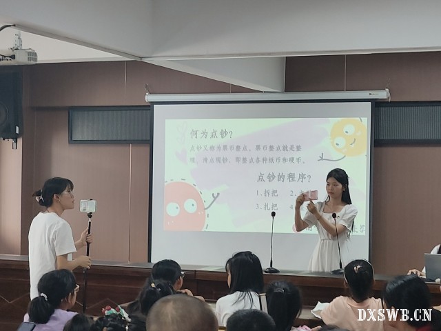 2024年7月,南宁职业技术大学“文艺促团结•非遗谱新篇”实践团在蒲晓龙老师的带领下,前往广西南宁市西乡塘区新村村委开展暑期三下乡社会实践活动。实践团队员积极开展了一系列丰富多彩的活动, 财经学院学子将所学的专业知识,以高昂的热情开展点钞课堂小活动,让小朋友们认识点钞的基本知识。