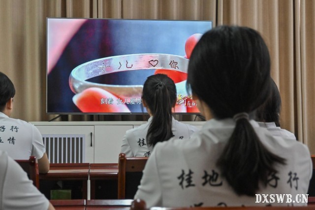 图为实践团成员在百坭村村委办公楼会议室观看黄文秀优秀事迹视频。李莹莹 供图