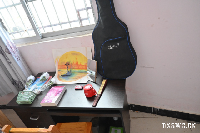 小而干净的房间,没有过多的装饰,一面白墙、一张普普通通的办公桌,简单到不能再简单的手工笔筒,无一不体现出她那颗为人民服务的炽热的心。在工作之余,黄文秀同志还会练习毛笔字、画画、弹吉他,虽然百坭村的物质条件非常艰苦,但她的精神世界却十分富有。
