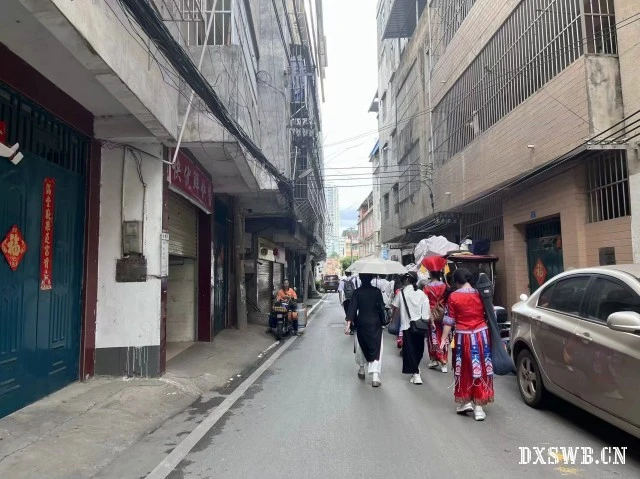 队伍从地铁口出发一路步行穿过乡间道路到达新村。